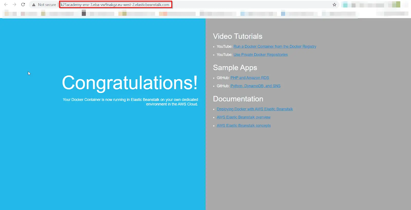 이미지 출처 : https://k21academy.com/amazon-web-services/aws-devops/aws-elastic-beanstalk/ 보통 Docker에 프로젝트를 배포하게되면 이 화면은 사라지게 되고 배포한 프로젝트가 출력된다.