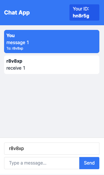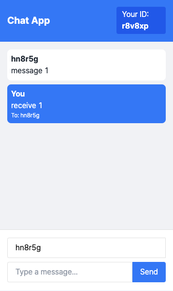 // app/chat/page.tsx 'use client' import { useState, useEffect, useRef } from 'react' interface ChatMessage { text: string; isSent: boolean; from: string; to?: string; } export default function ChatPage() { const [message, setMessage] = useState('') const [messages, setMessages] = useState<ChatMessage[]>([]) const [userId, setUserId] = useState<string | null>(null) const [recipientId, setRecipientId] = useState('') const socketRef = useRef<WebSocket | null>(null) useEffect(() => { const connectWebSocket = async () => { await fetch('/api/ws') // WebSocket 서버 초기화 const ws = new WebSocket('ws://localhost:3001') ws.onopen = () => { console.log('WebSocket connection established') } ws.onmessage = (event) => { const data = JSON.parse(event.data) if (data.type === 'id') { setUserId(data.id) } else if (data.type === 'private' || data.type === 'broadcast') { setMessages((prevMessages) => [...prevMessages, { text: data.message, isSent: false, from: data.from }]) } } ws.onerror = (error) => { console.error('WebSocket error:', error) } ws.onclose = () => { console.log('WebSocket connection closed') } socketRef.current = ws } connectWebSocket() return () => { if (socketRef.current) { socketRef.current.close() } } }, []) const sendMessage = (e: React.FormEvent) => { e.preventDefault() if (message && socketRef.current && userId) { const messageData = recipientId ? { type: 'private', from: userId, to: recipientId, message } : { type: 'broadcast', from: userId, message } socketRef.current.send(JSON.stringify(messageData)) setMessages((prevMessages) => [...prevMessages, { text: message, isSent: true, from: userId, to: recipientId || 'all' }]) setMessage('') } } return ( <div className="flex flex-col h-screen bg-gray-100"> <div className="bg-blue-500 text-white p-4 flex justify-between items-center"> <h1 className="text-xl font-bold">Chat App</h1> {userId && ( <div className="bg-blue-600 px-3 py-1 rounded"> Your ID: <span className="font-bold">{userId}</span> </div> )} </div> <div className="flex-1 overflow-y-auto p-4"> {messages.map((msg, index) => ( <div key={index} className={`mb-2 p-2 rounded-lg ${ msg.isSent ? 'bg-blue-500 text-white self-end' : 'bg-white text-gray-800 self-start' }`} > <div className="font-bold">{msg.isSent ? 'You' : msg.from}</div> <div>{msg.text}</div> {msg.to && <div className="text-xs">{msg.isSent ? `To: ${msg.to}` : ''}</div>} </div> ))} </div> <form onSubmit={sendMessage} className="p-4 bg-white border-t"> <div className="flex mb-2"> <input type="text" value={recipientId} onChange={(e) => setRecipientId(e.target.value)} className="flex-1 border rounded-l px-4 py-2 focus:outline-none focus:ring-2 focus:ring-blue-500" placeholder="Recipient ID (leave empty for broadcast)" /> </div> <div className="flex"> <input type="text" value={message} onChange={(e) => setMessage(e.target.value)} className="flex-1 border rounded-l px-4 py-2 focus:outline-none focus:ring-2 focus:ring-blue-500" placeholder="Type a message..." /> <button type="submit" className="bg-blue-500 text-white px-4 py-2 rounded-r hover:bg-blue-600 focus:outline-none focus:ring-2 focus:ring-blue-500" > Send </button> </div> </form> </div> ) }실행 화면 (기기 1)